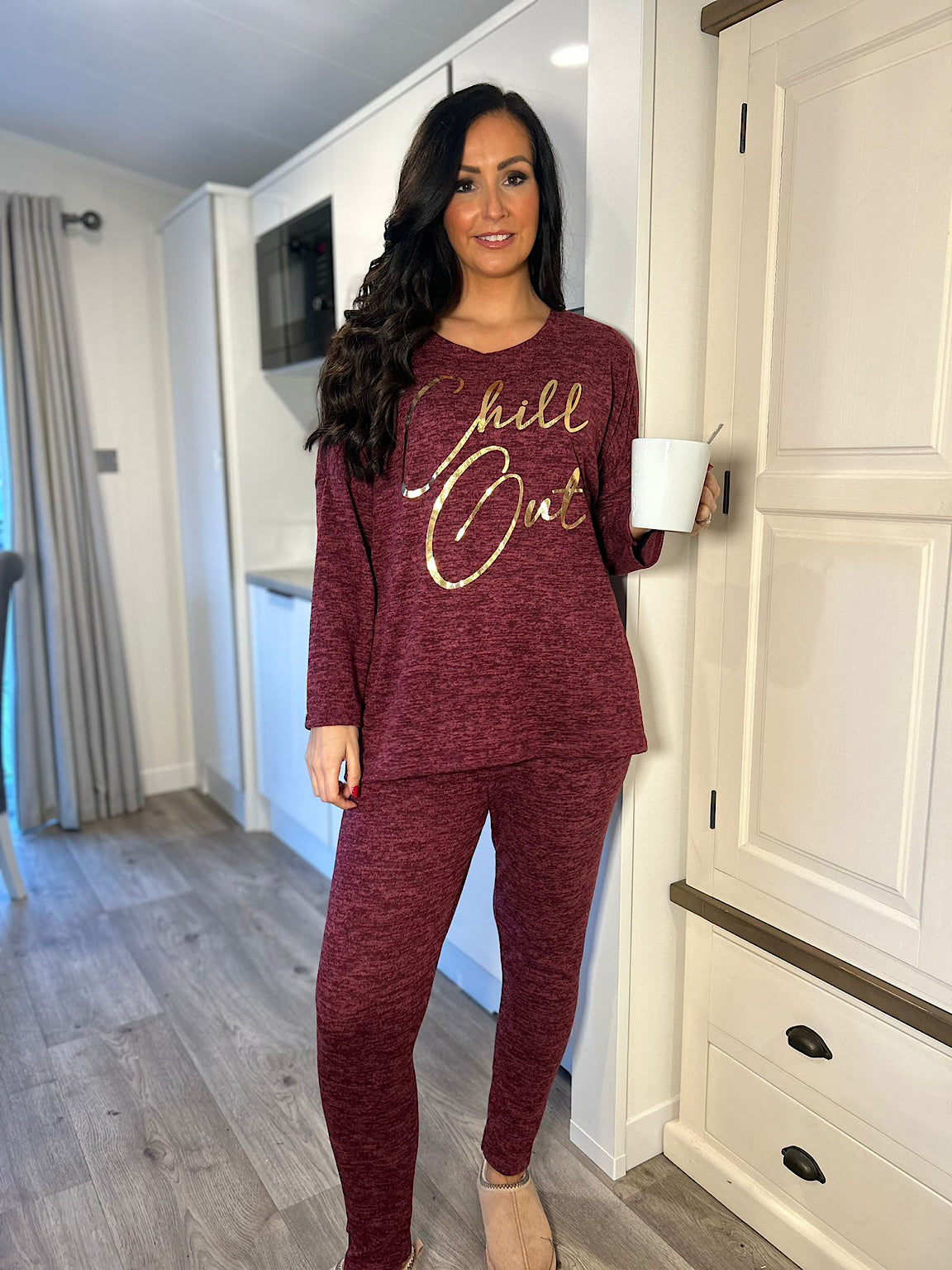 Nancy Oversized Diamante Heart Details Knitted Loungewear Set Bowsboutiques